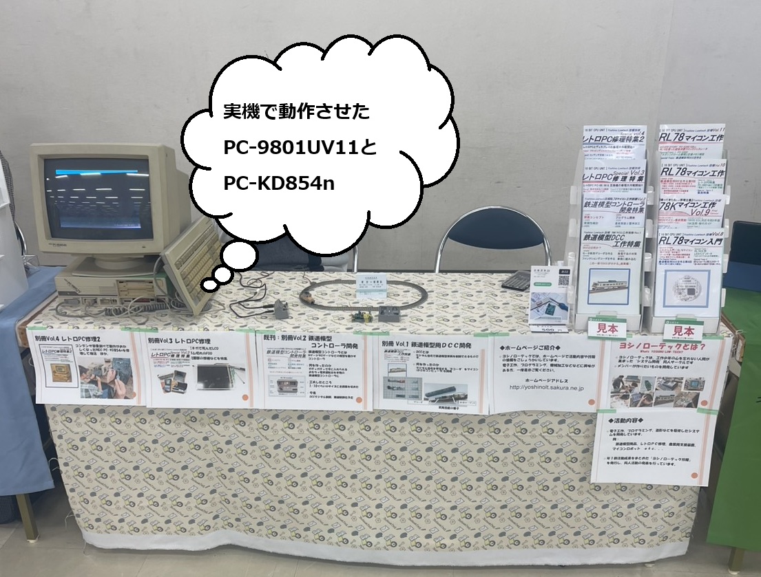 今回はサプライズで最新号(別冊Vol.4)で取り上げたPC-9801UV11とPC-KD854nを実機実働展示いたしました。